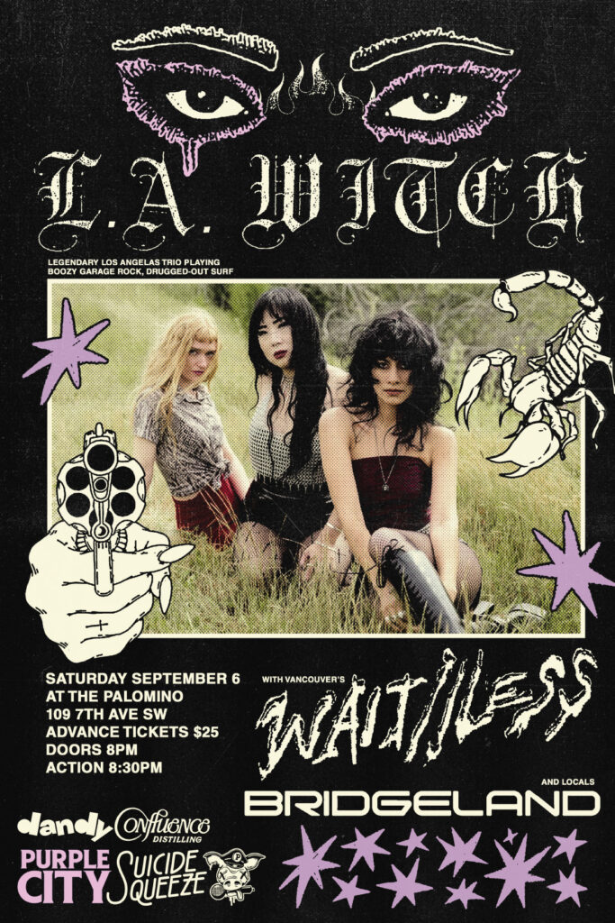 L.A. Witch with guests WAIT//LESS (Vancouver) and Bridgeland Where: Palomino Smokehouse and Social Club 109 7 Avenue S.W Calgary http://thepalomino.ca/ 18+ with government issued identification When: Saturday September 6, 2025 Doors: 8:00pm / Music 9:00pm Admission: $25.00 advance at www.showpass.com NO JERK POLICY ALWAYS IN EFFECT!! L.A. Witch L.A. Witch have always exuded an aura […]