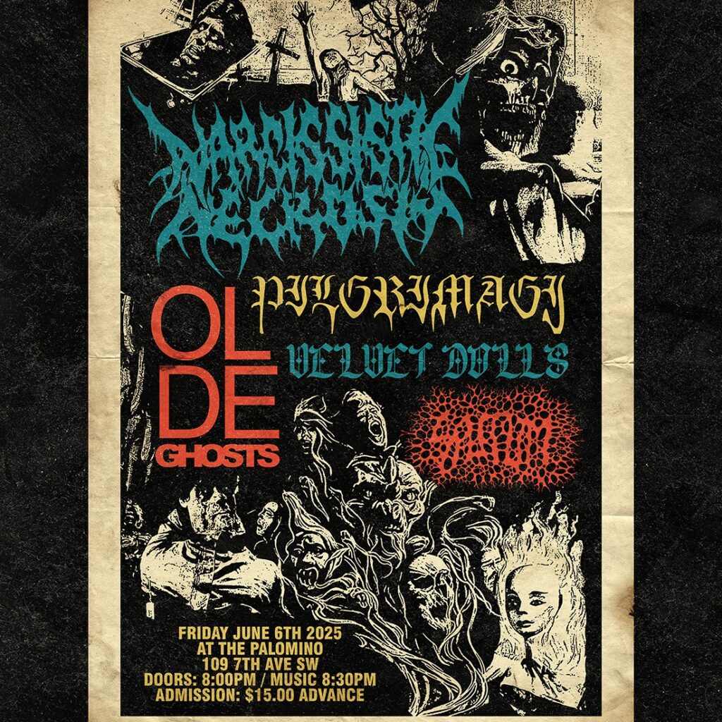 Narcissistic Necrosis, Old Ghosts, Pilgrimagi, Velvet Dolls, Sputum Where: Palomino Smokehouse and Social Club 109 7 Avenue S.W Calgary Home Page 18+ with government issued identification When: Friday June 6 , 2025 Doors: 8:00pm / Music 8:30pm Admission: $15.00 advance at www.showpass.com NO JERK POLICY ALWAYS IN EFFECT!! Narcissistic Necrosis Brutal Death Grind https://www.instagram.com/narcissisticnecrosis Old […]