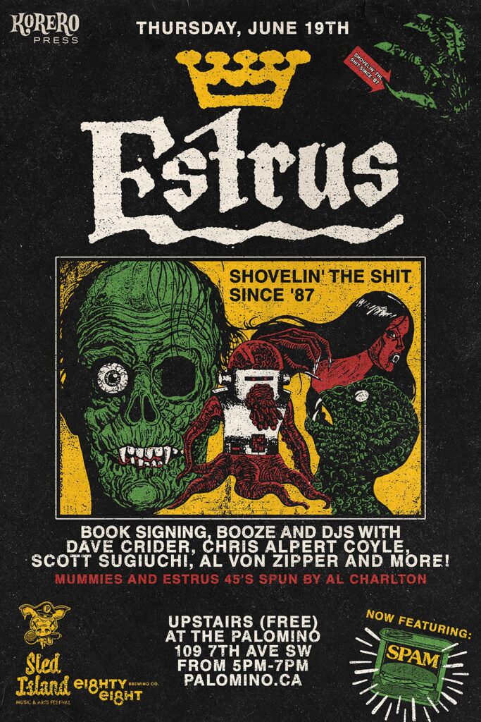Estrus: Shovelin’ The Shit Since ’87 Book Signing, Booze and DJs with Dave Crider, Chris Alpert Coyle, Scott Sugiuchi, Al Von Zipper and more….Limited books and SPAM will be available!!! Where: Palomino Smokehouse and Social Club / UPSTAIRS 109 7 Avenue S.W Calgary Home Page 18+ with government issued identification When: Thursday June 19, 2025 […]