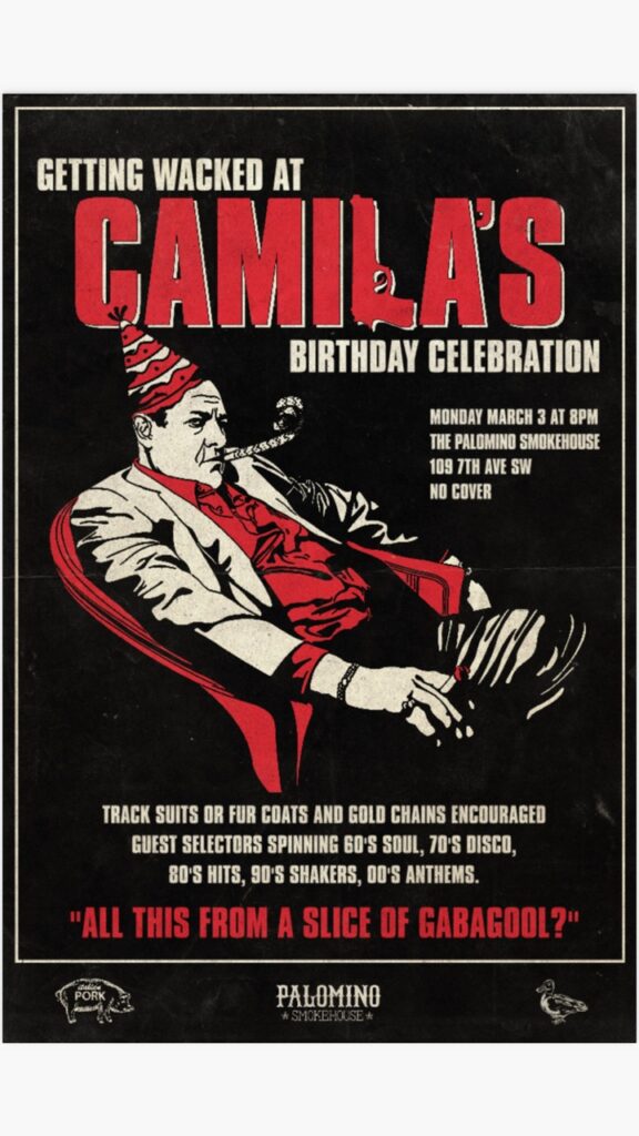 Getting Wacked at Camila’s Birthday Celebration Where: Palomino Smokehouse and Social Club 109 7 Avenue S.W Calgary Home Page 18+ with government issued identification When: Monday March 3, 2025 Doors: 8:00pm Admission: FREE NO JERK POLICY ALWAYS IN EFFECT!! Track Suits or Fur Coats and Gold Chains encouraged. 60’s soul, 70’s disco, 80’s hits, 90’s […]