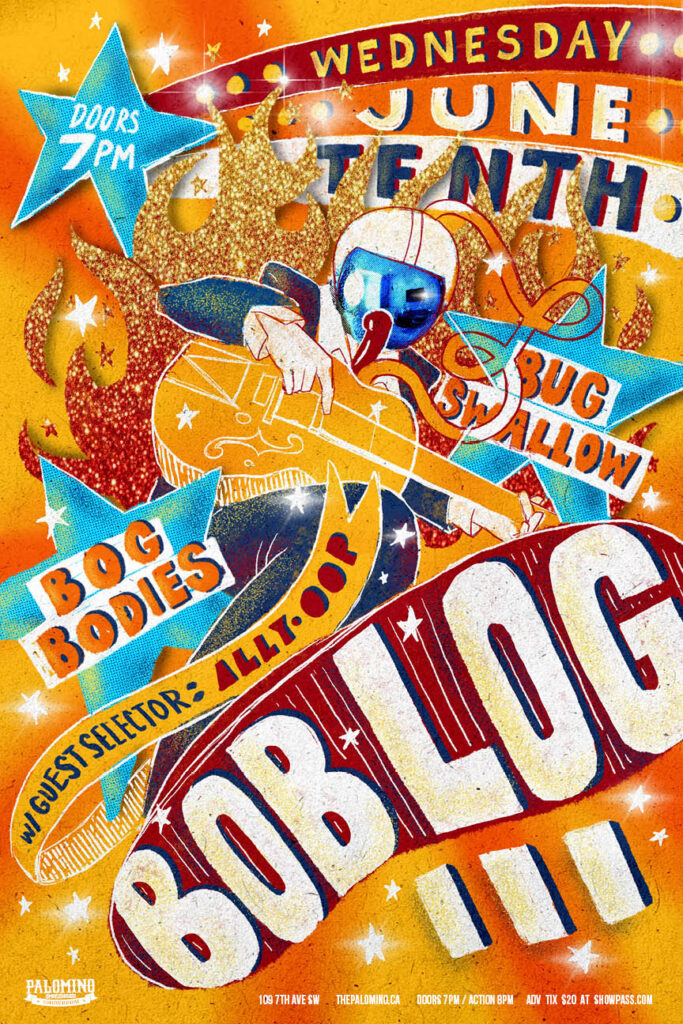 Bob Log III with Bug Swallow, Bog Bodies and guest selector Alley-oop Where: Palomino Smokehouse and Social Club 109 7 Avenue S.W Calgary http://thepalomino.ca/ 18+ with government issued identification When: Wednesday June 10, 2026 Doors: 7:00pm / Action 8:00pm Admission: $20.00 advance at www.showpass.com NO JERK POLICY ALWAYS IN EFFECT!! Bob Log III So when […]