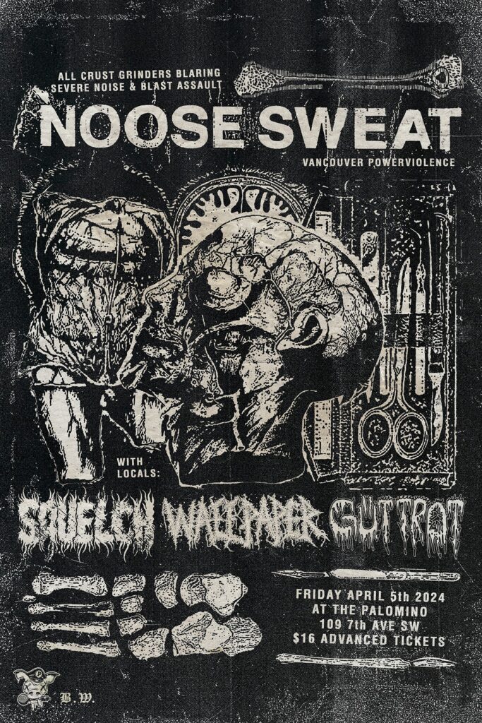 Noose Sweat / Squelch / Wallpaper / GÜTTROT Where: Palomino Smokehouse and Social Club 109 7 Avenue S.W Calgary Home Page 18+ with government issued identification When: Friday April 5, 2024 Doors: 8:00pm / Bands: 8:30pm Admission: $16.00 advance at www.showpass.com NO JERK POLICY ALWAYS IN EFFECT!! Noose Sweat (Vancouver) Fastcore Powerviolence https://noosesweat.bandcamp.com https://www.instagram.com/noosesweat Squelch […]