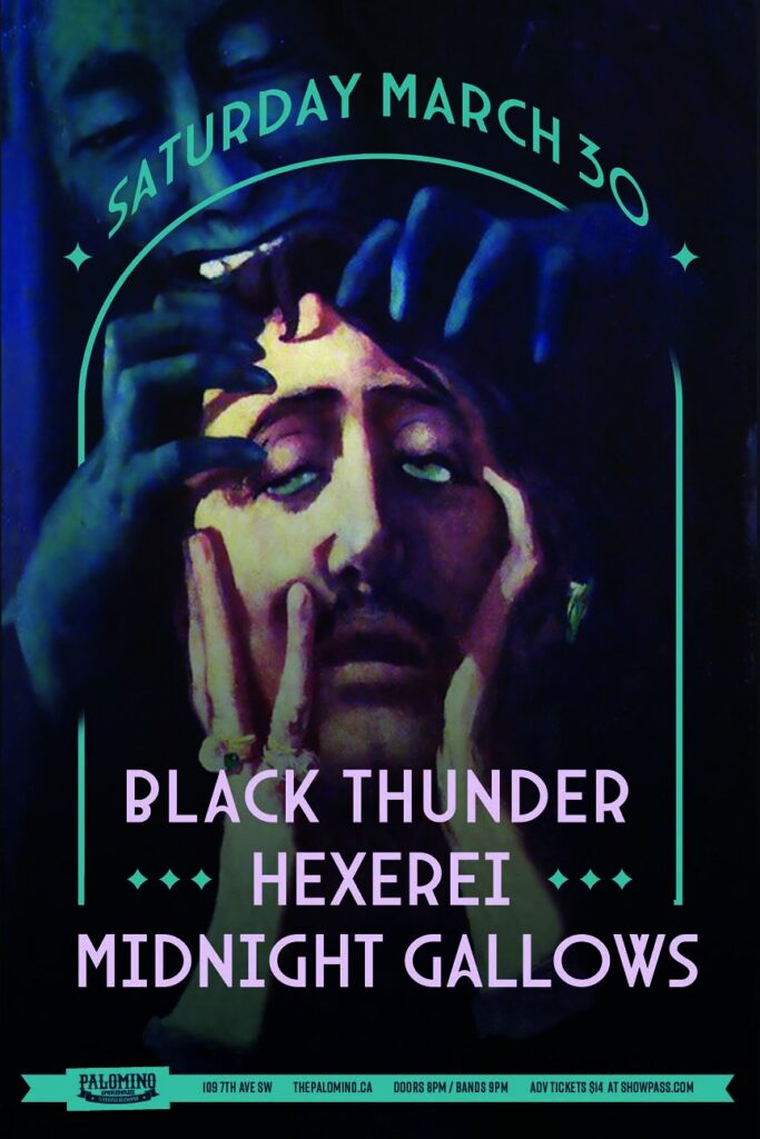 Black Thunder, Hexerei, Midnight Gallows Where: Palomino Smokehouse and Social Club / UPSTAIRS 109 7 Avenue S.W Calgary Home Page 18+ with government issued identification When: Saturday March 30th, 2024 Doors: 8:00pm / Band 9:00pm Admission: $14.00 advance at www.showpass.com NO JERK POLICY ALWAYS IN EFFECT!! Black Thunder (Regina) Black Thunder’s heavy psychedelia has been […]