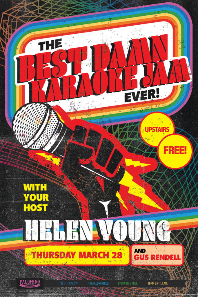 Helen Young and Gus Rendell will host The BEST Damn Karaoke Jam EVER!! Where: Palomino Smokehouse and Social Club / UPSTAIRS 109 7 Avenue S.W Calgary Home Page 18+ with government issued identification When: Thursday March 28, 2024 Doors: 10:00pm until late Admission: FREE NO JERK POLICY ALWAYS IN EFFECT!! Karaoke (/ˌkæriˈoʊki/;[1] Japanese: [kaɾaoke] ⓘ; […]