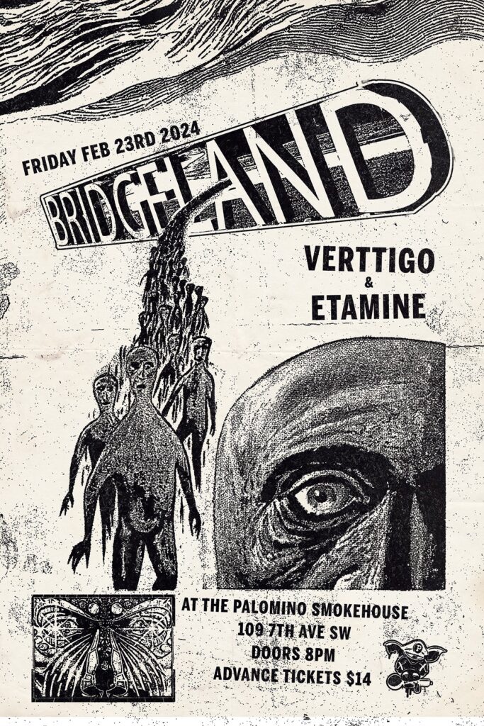 Bridgeland, Verttigo and Étamine Where: Palomino Smokehouse and Social Club 109 7 Avenue S.W Calgary Home Page 18+ with government issued identification When: Friday February 23, 2024 Doors: 8:00pm / Band 9:00pm Admission: $14.00 advance at www.showpass.com NO JERK POLICY ALWAYS IN EFFECT!! Bridgeland A tripped-out post-punk sound. Drawing on everything from late ’80s Anglo […]