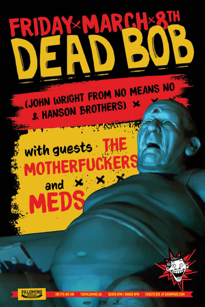 Dead Bob (John Wright No Means No), Mr. Awesome, Motherf*ckers and MEDS Where: Palomino Smokehouse and Social Club 109 7 Avenue S.W Calgary Home Page 18+ with government issued identification When: Friday March 8, 2024 Doors: 8:00pm / bands 8:30pm Admission: $25.00 advance at www.showpass.com NO JERK POLICY ALWAYS IN EFFECT!! Dead Bob Dead Bob […]