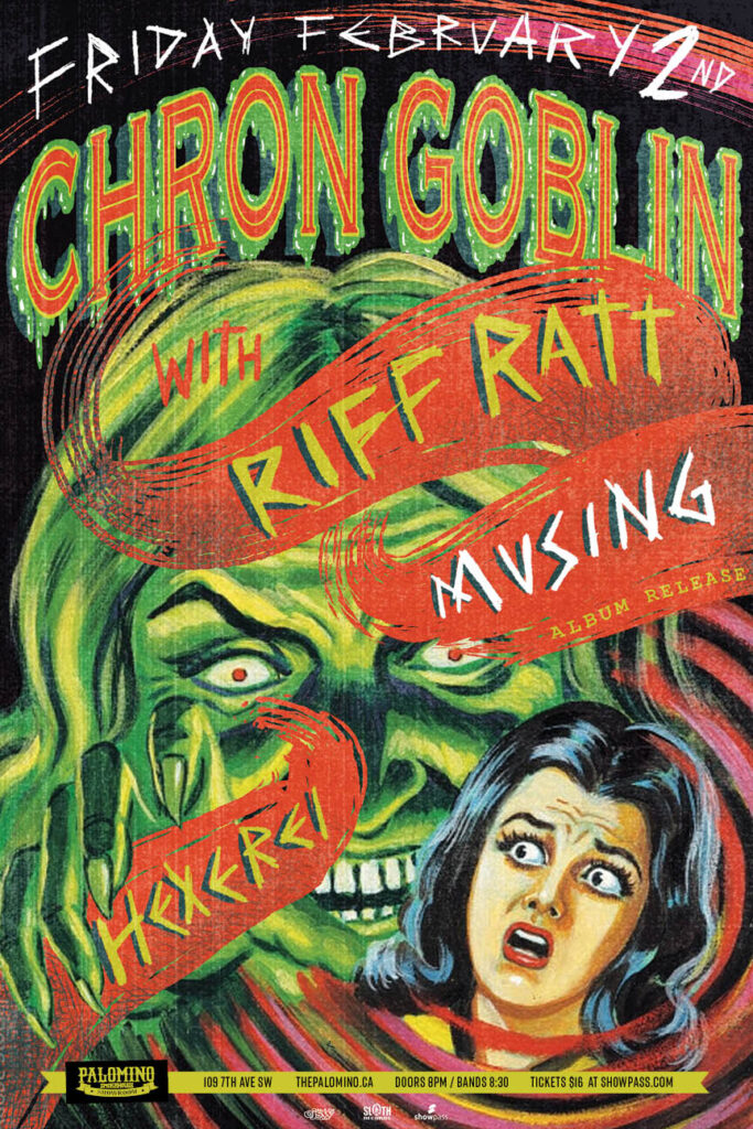 Chron Goblin, Riff Ratt, Musing (Album Release) and Hexerie Where: Palomino Smokehouse and Social Club 109 7 Avenue S.W Calgary Home Page 18+ with government issued identification When: Friday February 2, 2024 Doors: 8:00pm / Band 8:30pm Admission: $14.00 advance at www.showpass.com NO JERK POLICY ALWAYS IN EFFECT!! Chron Goblin High octane party sort of […]