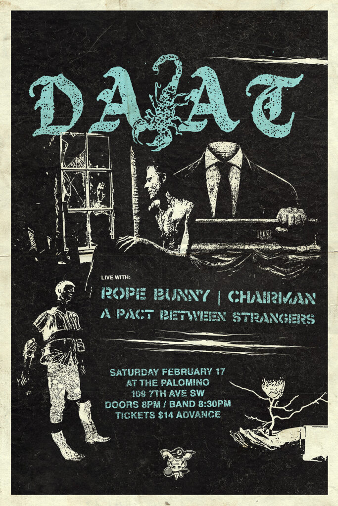DA’AT, Rope Bunny, Chairman, A Pact Between Strangers Where: Palomino Smokehouse and Social Club 109 7 Avenue S.W Calgary Home Page 18+ with government issued identification When: Saturday February 17th, 2024 Doors: 8:00pm / bands 8:30pm Admission: $14.00 advance at www.showpass.com NO JERK POLICY ALWAYS IN EFFECT!! DA’AT Coldwave Deathrock Post-Punk https://da-at.bandcamp.com https://www.instagram.com/daat.music Rope Bunny […]