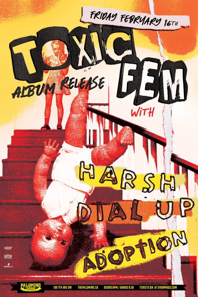 Toxic Fem album release with Harsh, Dial Up and Adoption Where: Palomino Smokehouse and Social Club 109 7 Avenue S.W Calgary Home Page 18+ with government issued identification When: Friday February 16, 2024 Doors: 8:00pm / bands 8:30pm Admission: $14.00 advance at www.showpass.com NO JERK POLICY ALWAYS IN EFFECT!! Toxic Fem Homicidal girlcore https://www.instagram.com/toxicfemband/ https://distrokid.com/hyperfollow/toxicfem/act-5-scene-3 […]