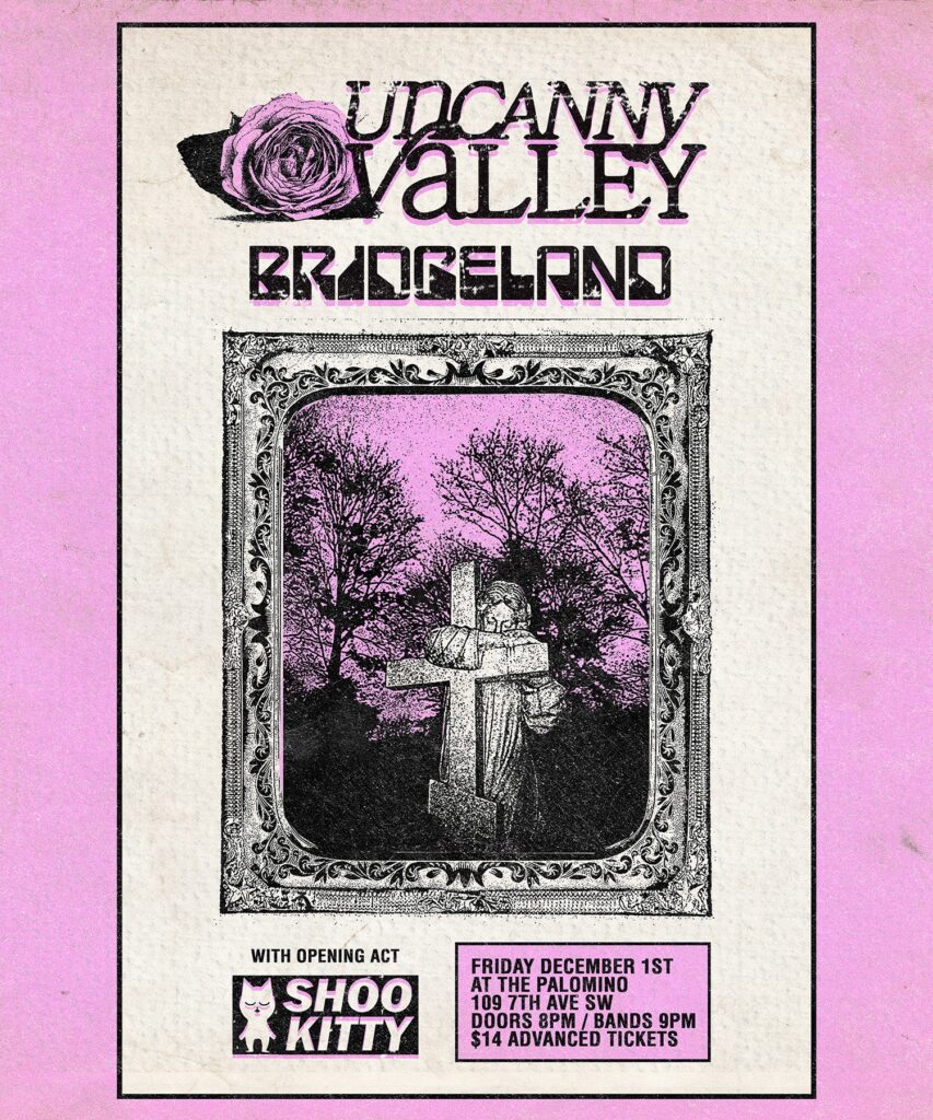 Uncanny Valley, Bridgeland and Shoo Kitty Where: Palomino Smokehouse and Social Club 109 7 Avenue S.W Calgary Home Page 18+ with government issued identification When: Friday December 1, 2023 Doors: 8:00pm / bands 9:00pm Admission: $14.00 advance at www.showpass.com NO JERK POLICY ALWAYS IN EFFECT!! Uncanny Valley Post Punk | Dark Wave https://www.instagram.com/uncanny.valley_ Bridgeland Krautrock […]