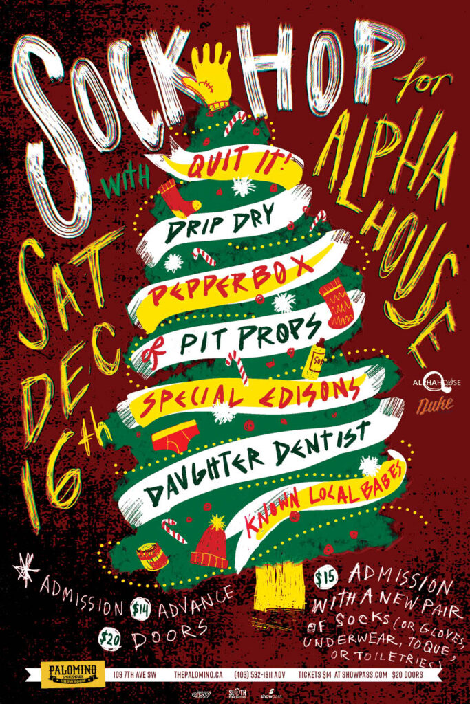 Duke Lager presents The Palomino Smokehouse Annual Sock Hop for the Alpha House. It’s that time of year again where we get some of Calgary’s finest bands to chip in, throw down and help out The Alpha House. Two stages for one great cause. This years bands include Quit It!, Drip Dry, Pepper Box, Pit […]