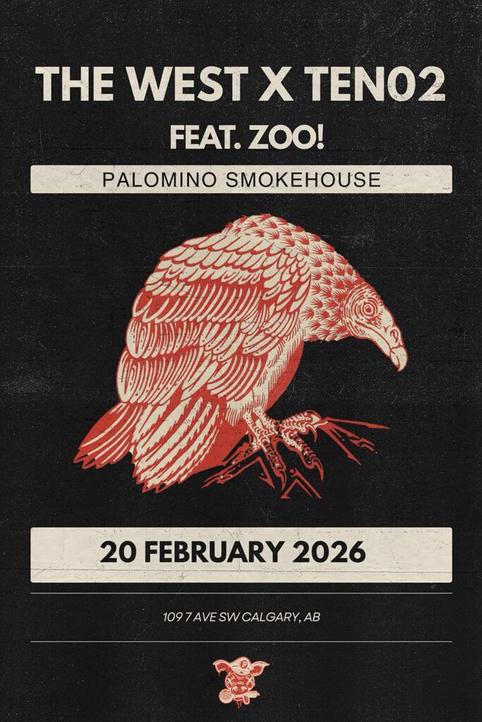 The West, TEN02 and ZOO! Where: Palomino Smokehouse and Social Club 109 7 Avenue S.W Calgary http://thepalomino.ca/ 18+ with government issued identification When: Friday Febraury 20, 2026 Doors: 8:00pm / Action 9:00pm Admission: $15.00 advance at www.showpass.com NO JERK POLICY ALWAYS IN EFFECT!! The West Blues influenced Indie Rock https://www.instagram.com/thewestofficial TEN02 Modern Indie Meets 90’s […]