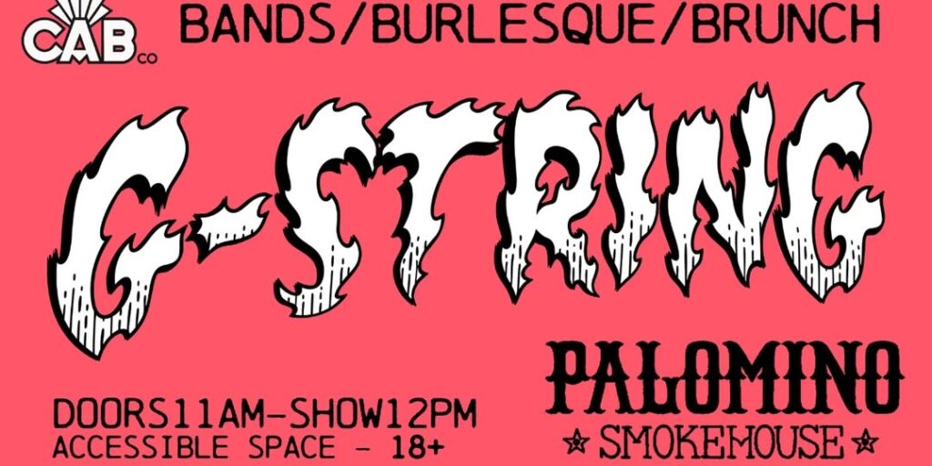 GString Brunch Live Bands & Burlesque Where: Palomino Smokehouse and Social Club 109 7 Avenue S.W Calgary http://thepalomino.ca/ 18+ with government issued identification When: Sunday Febraury 15, 2026 Doors: 11:00am / Action 12:00pm Admission: $20.00 advance at www.showpass.com NO JERK POLICY ALWAYS IN EFFECT!! Alright alright alright all you rowdy gals n’pals Are you ready […]