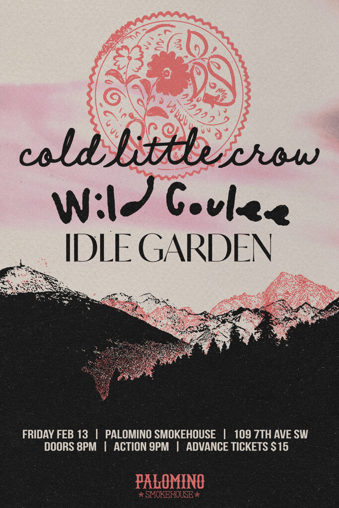 Cold Little Crow, Wild Coulee, Idle Garden Where: Palomino Smokehouse and Social Club 109 7 Avenue S.W Calgary http://thepalomino.ca/ 18+ with government issued identification When: Friday Febraury 13, 2026 Doors: 8:00pm / Action 9:00pm Admission: $15.00 advance at www.showpass.com NO JERK POLICY ALWAYS IN EFFECT!! Cold Little Crow Moody alt-folk for friends https://www.instagram.com/coldlittlecrow Wild Coulee […]