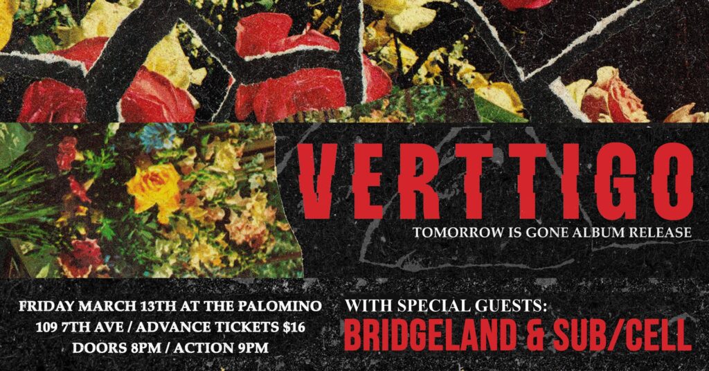 VERTTIGO album release with special guests Bridgeland and SUB//CELL Where: Palomino Smokehouse and Social Club 109 7 Avenue S.W Calgary http://thepalomino.ca/ 18+ with government issued identification When: Friday March 13, 2026 Doors: 8:00pm / Action 9:00pm Admission: $15.00 advance at www.showpass.com NO JERK POLICY ALWAYS IN EFFECT!! VERTTIGO 🖤 Dark Dreamgaze https://www.instagram.com/verttigo.music Bridgeland Punk Krautrock […]