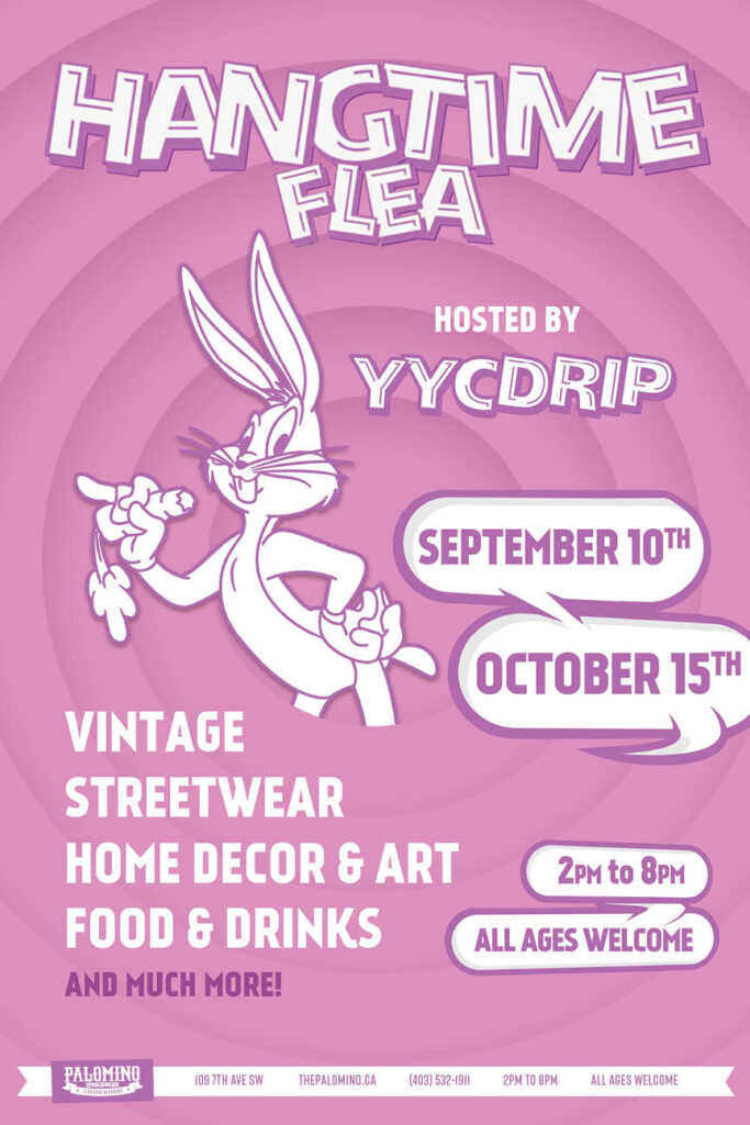 @hang_time_flea Vintage Streetwear, Home Décor, Art, Food & Beverages and more. All ages welcome. Where: Palomino Smokehouse and Social Club 109 7 Avenue S.W Calgary http://thepalomino.ca/ 18+ with government issued identification When: – Sunday September 10, 2023 – Sunday October 15, 2023 Doors: 2:00pm until 8:00pm Admission: FREE NO JERK POLICY ALWAYS IN EFFECT!! https://www.instagram.com/yyc_drip/ […]