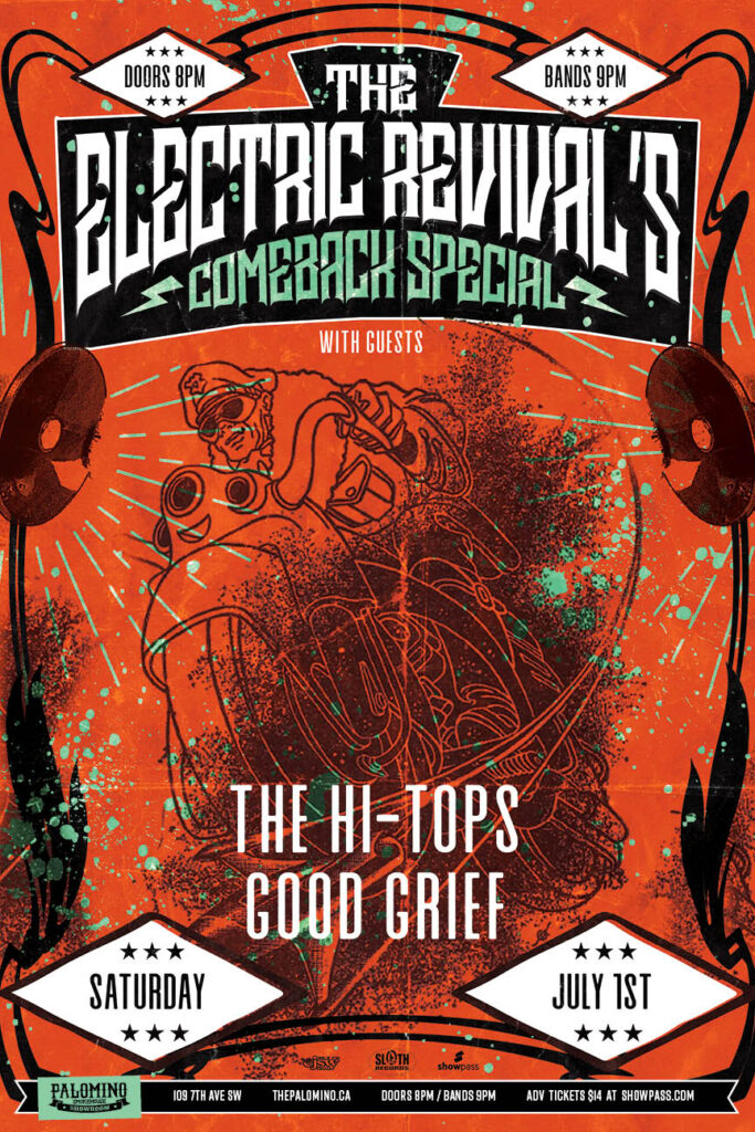 The Electric Revival’s “Comeback Special” with The Hi-Tops and Good Grief Where: Palomino Smokehouse and Social Club 109 7 Avenue S.W Calgary Home Page 18+ with government issued identification When: Saturday July 1, 2023 Doors: 8:00pm / Music 9:00pm Admission: $14.00 advance at www.showpass.com NO JERK POLICY ALWAYS IN EFFECT!! The Electric Revival Muscle-flexing, suds-guzzling, […]