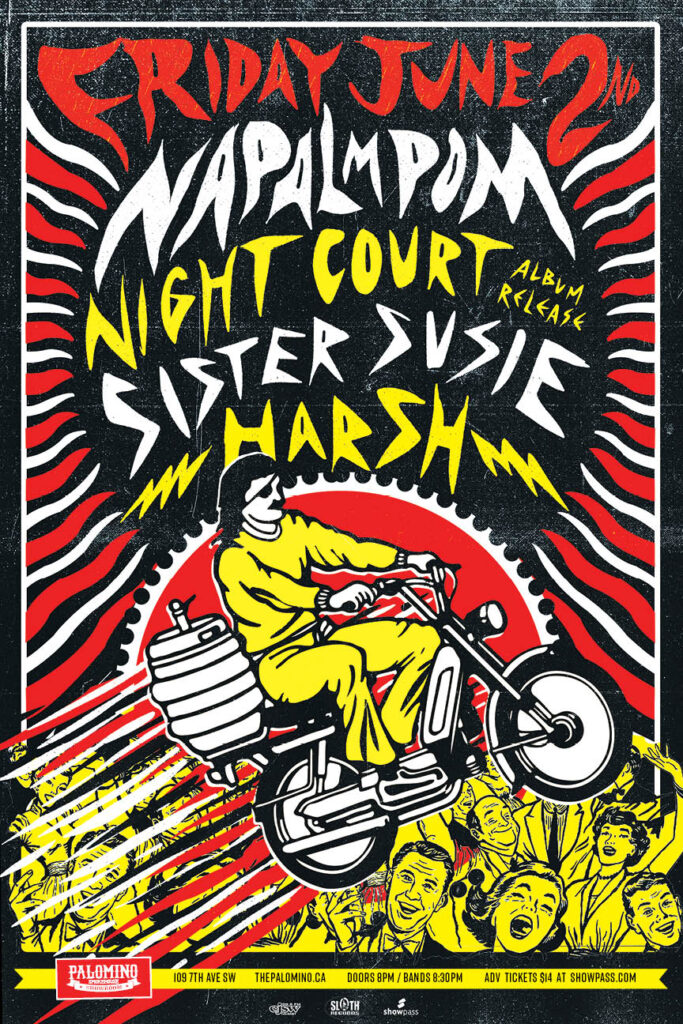 Napalmpom, Night Court, Sister Suzie, Harsh Where: Palomino Smokehouse and Social Club 109 7 Avenue S.W Calgary http://thepalomino.ca/ 18+ with government issued identification When: Friday June 2, 2023 Doors: 8:00pm / Music 8:30pm Admission: $14.00 advance at www.showpass.com NO JERK POLICY ALWAYS IN EFFECT!! Napalmpom Napalmpom plays celebratory rock n’ roll so good even the […]