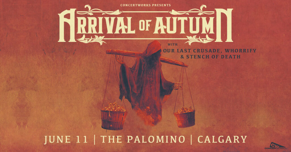 :: ConcertWorks Presents :: Arrival Of Autumn w/ Our Last Crusade , Whorrify & Stench of Death Sunday, June 11, 2023 The Palomino, Calgary 18+ —– Arrival Of Autumn https://www.facebook.com/ArrivalOfAutumn Our Last Crusade https://www.facebook.com/ourlastcrusade Stench of Death https://www.facebook.com/OdorOfTheEnd Whorrify https://www.facebook.com/whorrifytheband