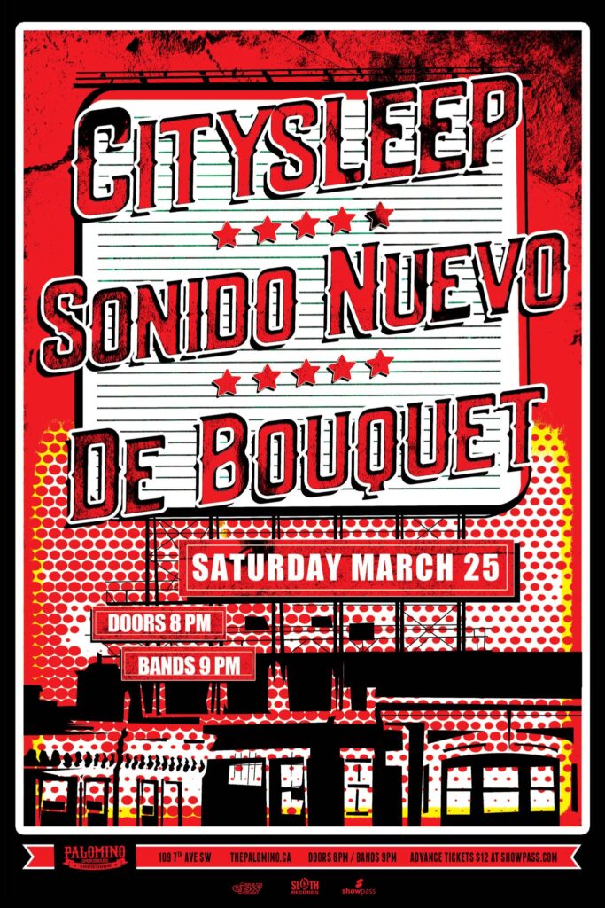 Citysleep, Sonido Nuevo and De Bouquet Where: Palomino Smokehouse and Social Club 109 7 Avenue S.W Calgary http://thepalomino.ca/ 18+ with government issued identification When: Saturday March 25, 2023 Doors: 8:00pm / Music 9:00pm Admission: $12.00 advance at www.showpass.com NO JERK POLICY ALWAYS IN EFFECT!! Citysleep Citysleep is an open electronic collaboration project between synth-pop artist […]