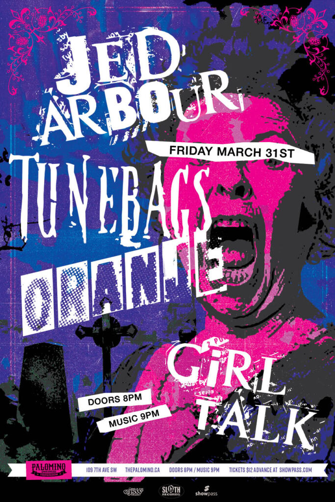 Jed Arbour, Tunebags, Oranje, Girl Talk Where: 109 7 Avenue S.W Calgary http://thepalomino.ca/ 18+ with government issued identification When: Friday March 31, 2023 Doors: 8:00pm / Music: 9:00pm Admission: $12.00 advance at www.showpass.com NO JERK POLICY ALWAYS IN EFFECT!! JED ARBOUR honest, filling, mathy, emptying music https://linktr.ee/Jedarbour https://jedarbour.bandcamp.com/ https://www.instagram.com/jedarbour/ Tunebags Calgary crew with some tunes […]
