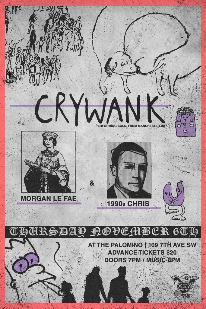 Crywank – solo set (Manchester) with guests Morgan La Fae and 1990s Chris Where: Palomino Smokehouse and Social Club 109 7 Avenue S.W Calgary http://thepalomino.ca/ 18+ with government issued identification When: Thursday November 6, 2025 Doors: 7:00pm / Action 8:00pm Admission: $20.00 advance at www.showpass.com NO JERK POLICY ALWAYS IN EFFECT!! Crywank (Manchester) Crywank was […]