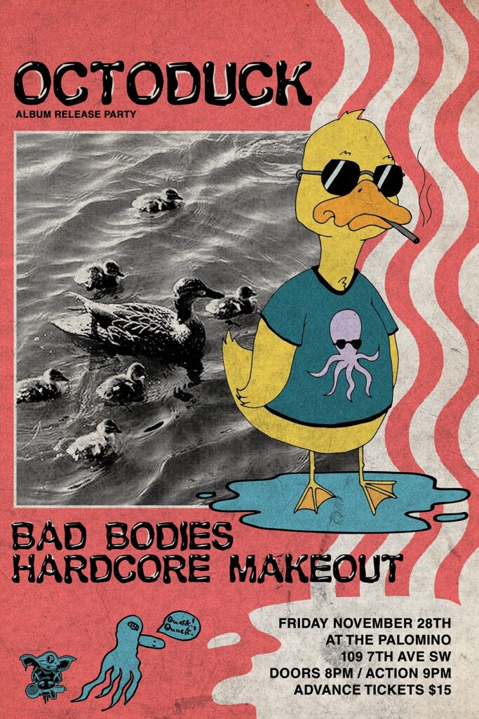 Octoduck album relesae with Bad Bodies and Hardcore Makeout Where: Palomino Smokehouse and Social Club 109 7 Avenue S.W Calgary http://thepalomino.ca/ 18+ with government issued identification When: Friday November 28, 2025 Doors: 8:00pm / Music 9:00pm Admission: $15.00 advance at www.showpass.com NO JERK POLICY ALWAYS IN EFFECT!! Octoduck Smooth Indie Rock https://www.instagram.com/octoduckmusic Bad Bodies Dreamy […]