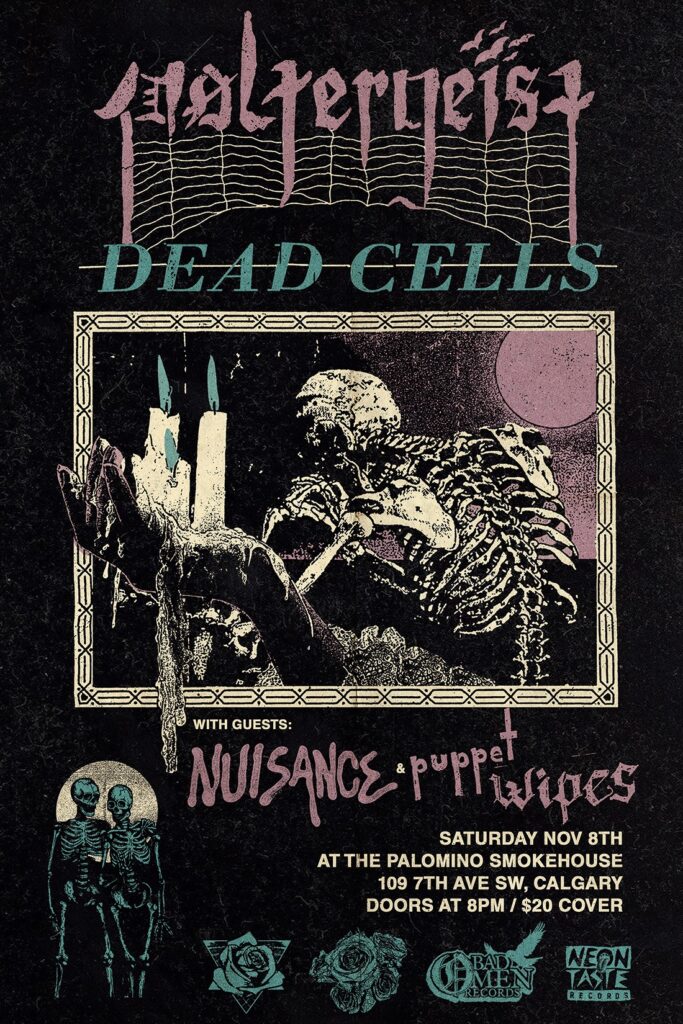 Poltergeist, Dead Cells (Vancouver), Puppet Wipes and Nuisance Where: Palomino Smokehouse and Social Club 109 7 Avenue S.W Calgary http://thepalomino.ca/ 18+ with government issued identification When: Saturday November 8, 2025 Doors: 8:00pm / Action 8:30pm Admission: $20.00 advance at www.showpass.com NO JERK POLICY ALWAYS IN EFFECT!! Poltergeist Post Punk Death Rock https://www.instagram.com/poltergeistovdoom Dead Cells (Vancouver) […]