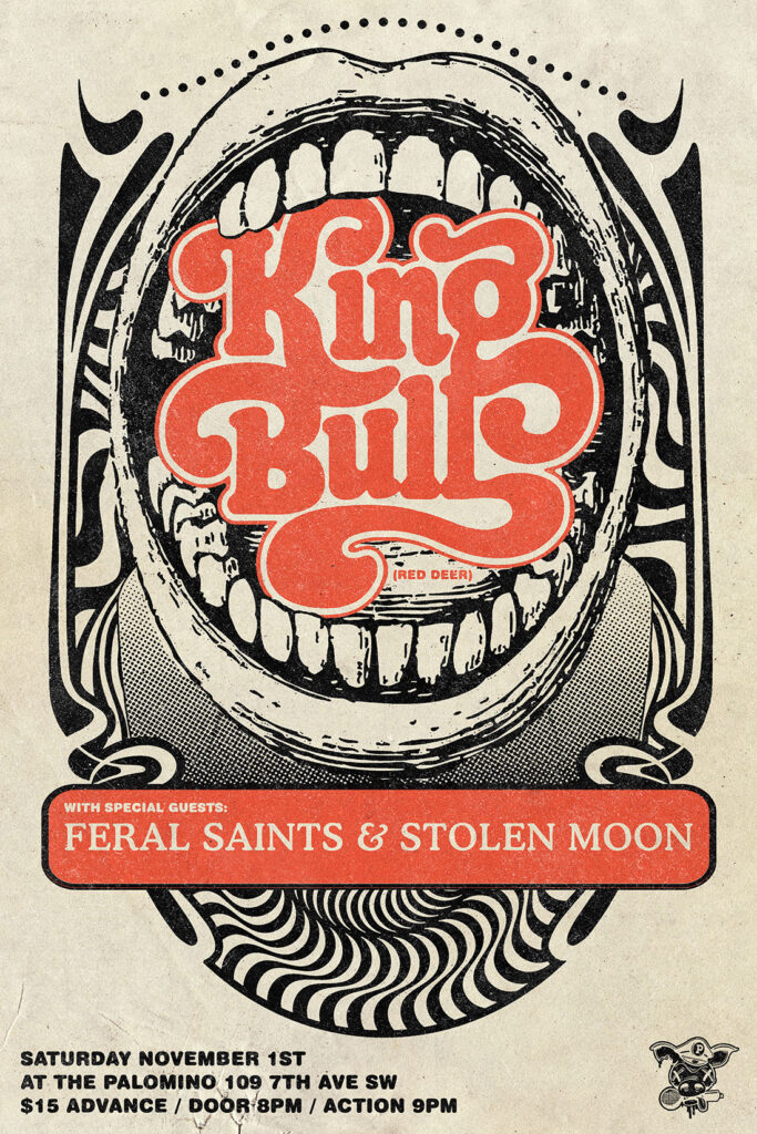 King Bull, Feral Saints & Stolen Moon Where: Palomino Smokehouse and Social Club 109 7 Avenue S.W Calgary http://thepalomino.ca/ 18+ with government issued identification When: Saturday November 1, 2025 Doors: 8:00pm / Music 9:00pm Admission: $15.00 advance at www.showpass.com NO JERK POLICY ALWAYS IN EFFECT!! King Bull Fuzzed Garage Punk https://kingbull.bandcamp.com https://www.instagram.com/kingbull_music Feral Saints Heavy […]
