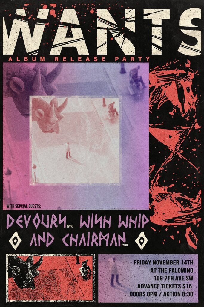 WANTS album release with with DEVOURS (Vancouver), Wish Whip and Chairman (Edmonton)