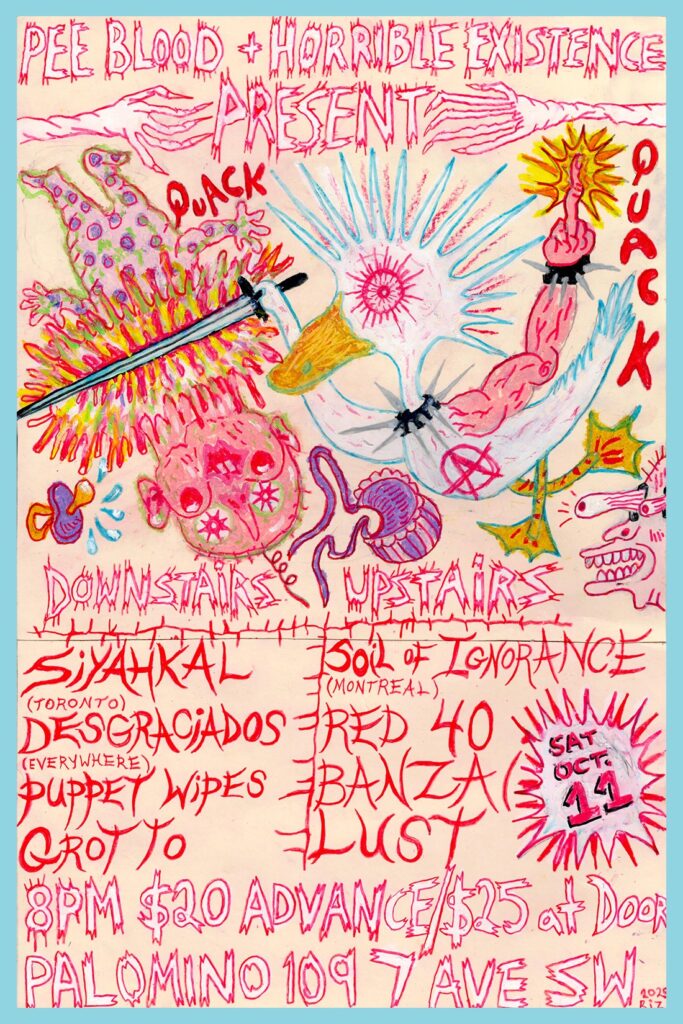 Pee Blood + Horrible Existence Present Siyahkal (Toronto), Desgraciados (Toronto/Calgary), Puppet Wipes, Grotto, Soil of Ignorance (Montreal), Red 40, Banzai, Lust Where: Palomino Smokehouse and Social Club 109 7 Avenue S.W Calgary http://thepalomino.ca/ 18+ with government issued identification When: Saturday October 11, 2025 Doors: 8:00pm / Music 8:30pm Admission: $20.00 advance at www.showpass.com NO JERK […]