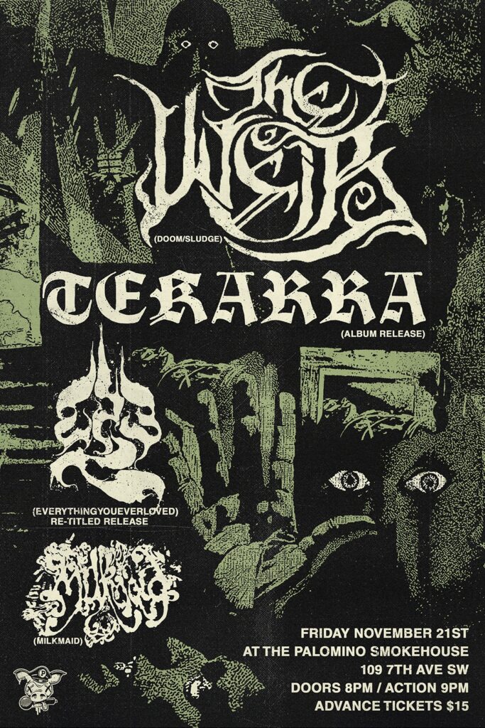The Weir, Tekarra, EVERYTHINGYOUEVERLOVED, Milkmaid Where: Palomino Smokehouse and Social Club 109 7 Avenue S.W Calgary http://thepalomino.ca/ 18+ with government issued identification When: Friday Friday November 21, 2025 Doors: 8:00pm / Action 8:30pm Admission: $15.00 advance at www.showpass.com NO JERK POLICY ALWAYS IN EFFECT!! The Weir Sludge Doom https://theweir.bandcamp.com https://www.instagram.com/theweir_doom Tekarra (Edmonton) Atmospheric Doom Metal […]